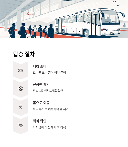 - 기사님께 티켓 제시 → 좌석 확인 후 착석