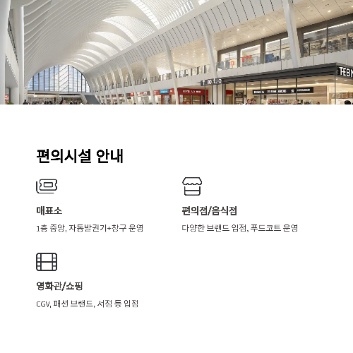| 매표소 | 1층 중앙 / 자동발권기 + 창구 동시 운영 |