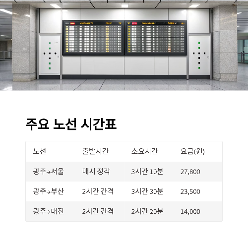 ✅ 4. 🚌 광주 유스퀘어 버스터미널 주요 노선 시간표