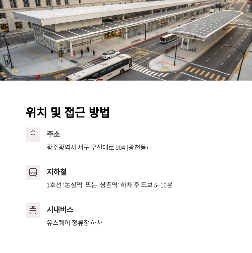 - 🚇 지하철 1호선: ‘농성역’ 또는 ‘쌍촌역’ 하차 후 도보 5~10분