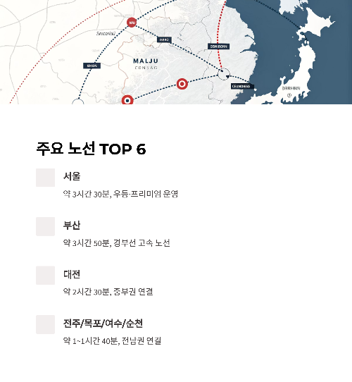 ✔ 서울·부산·대전·전주 등 전국 주요 도시와 연결되며