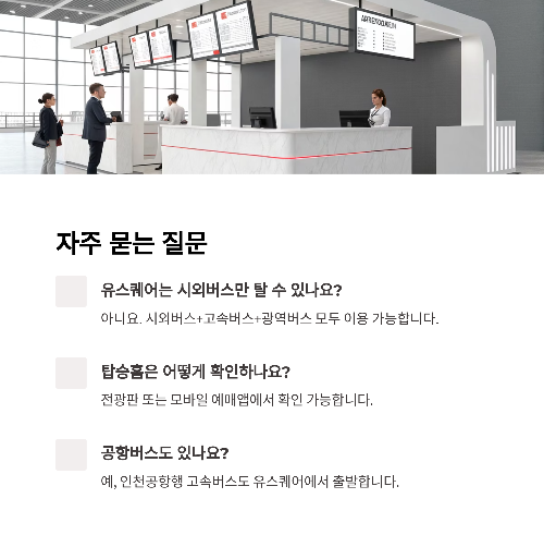 👉 예, 인천공항행 고속버스도 유스퀘어에서 출발합니다. 예매 필수입니다.