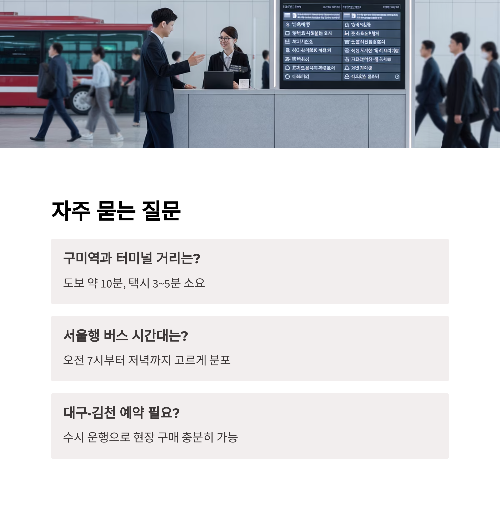 | 김천 | 약 30분 | 인접 도시 / 통근 왕복 수요 높음 / 수시 운행 |