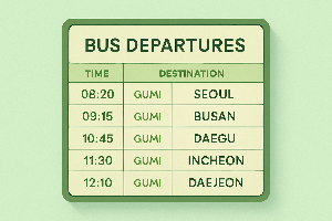 ✅ 4. 🚌 구미 시외버스 터미널 주요 노선 시간표