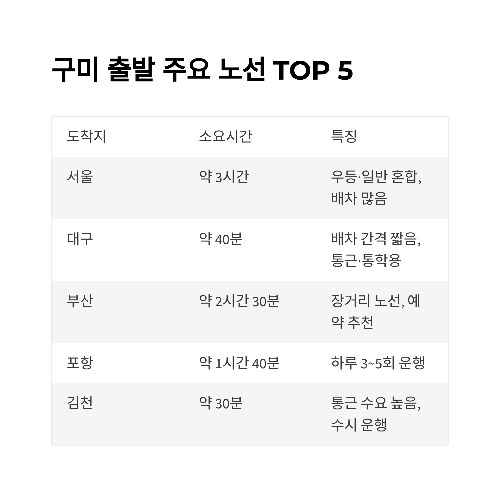 ✅ 3. 구미 출발 주요 노선 TOP 5