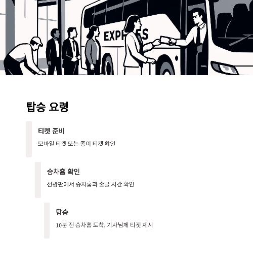 - 기사님께 티켓 제시 → 좌석 확인 후 탑승