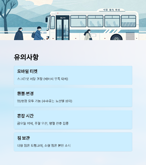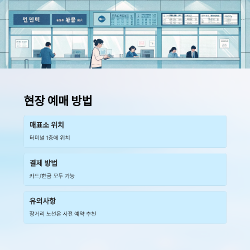 ✔ 당일 예매 가능하지만 장거리 노선은 사전 예약 추천