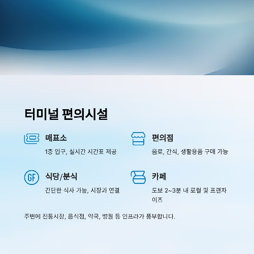 | 편의점 | 터미널 내 또는 인근 위치 / 음료, 간식, 생활용품 구매 가능 |