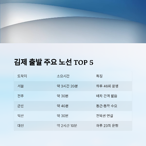 ✅ 3. 김제 출발 주요 노선 TOP 5