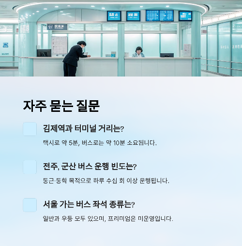 - 🚇 KTX 김제역 ↔ 터미널: 택시 약 5분 / 버스 약 10분 소요
