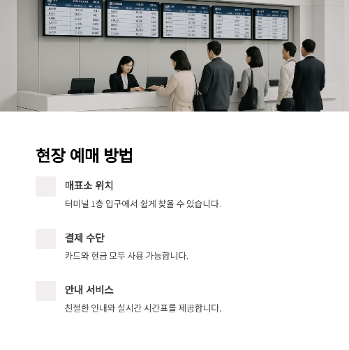 | 매표소 | 창구+자동발권기 병행 / 실시간 시간표 제공 / 친절한 응대 |