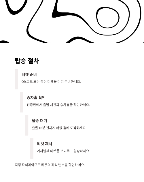 | 모바일 티켓 | 스크린샷 저장 권장 (배터리 부족, 데이터 끊김 대비) |