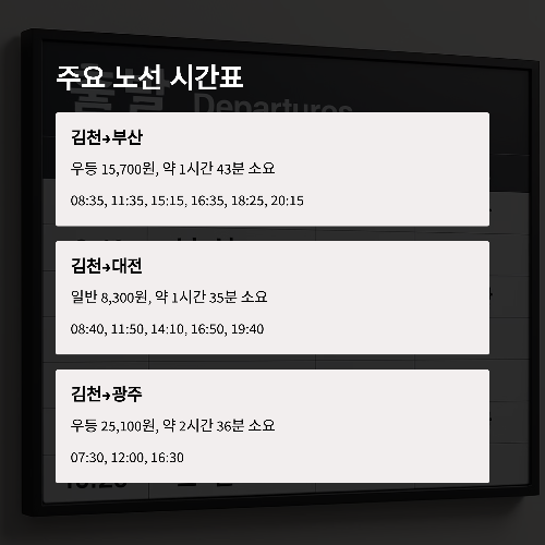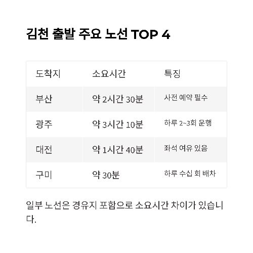 ✅ 3. 김천 출발 주요 노선 TOP 4