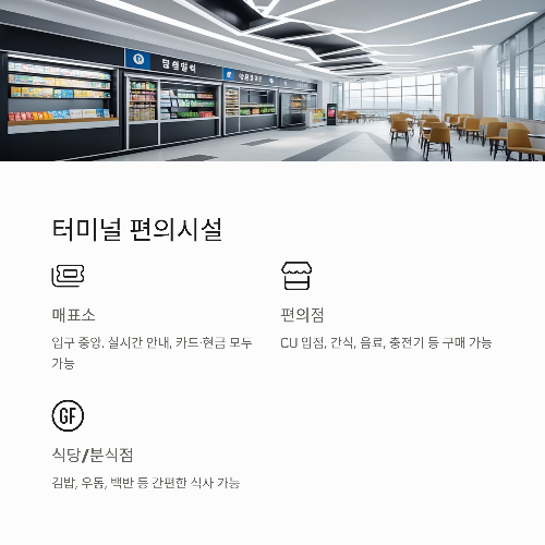 | 카페 | 터미널 내 로컬 커피숍 & 인근 프랜차이즈 카페 (도보 3~5분) |