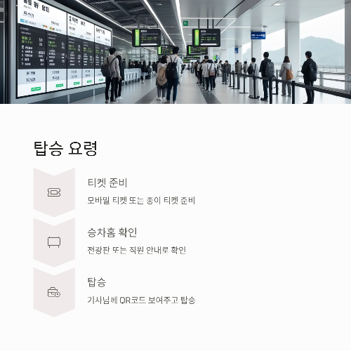 - 전광판 or 직원 안내로 승차홈 확인