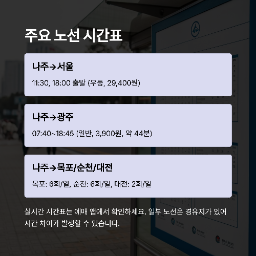 ✅ 4. 🚌 나주 시외버스 터미널 주요 노선 시간표