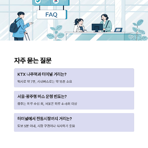- 🚇 KTX 나주역 ↔ 터미널: 택시 약 7분, 버스 15분 내외