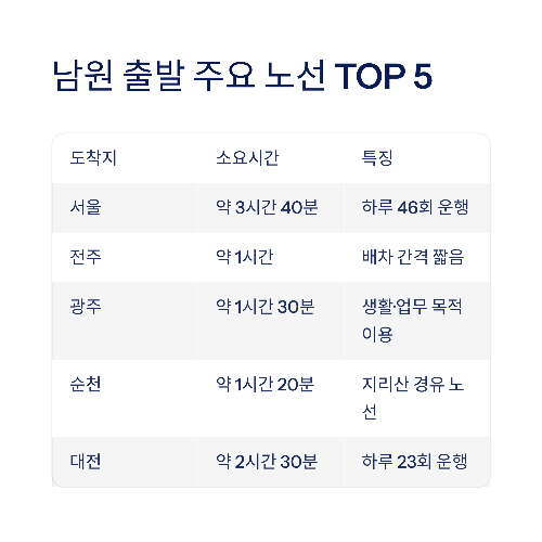 ✅ 3. 남원 출발 주요 노선 TOP 5