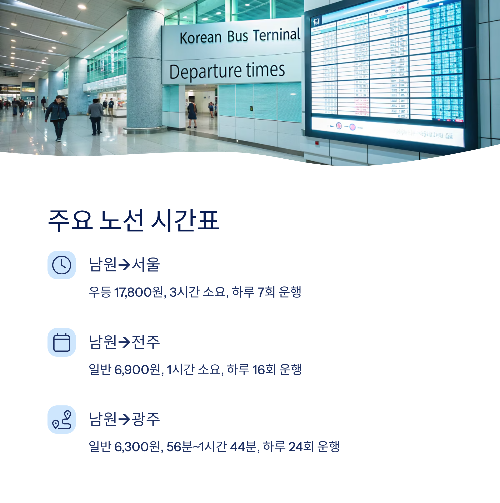 ✅ 4. 🚌 남원 시외버스 터미널 주요 노선 시간표