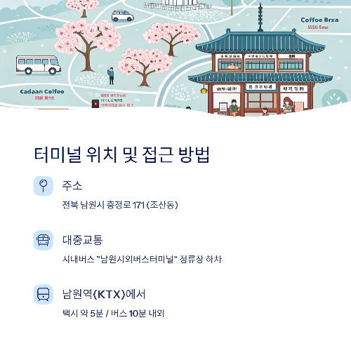 - 🚇 남원역(KTX) ↔ 터미널: 택시 약 5분 / 버스 10분 내외