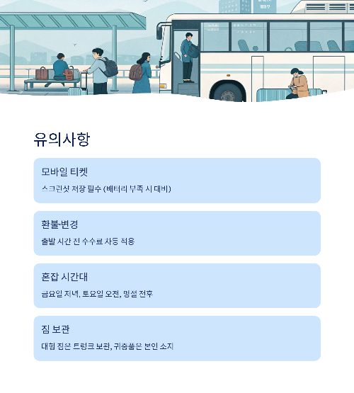 | 환불·변경 | 예매 앱 또는 매표소에서 가능 / 출발 시간 전 수수료 차등 적용 |