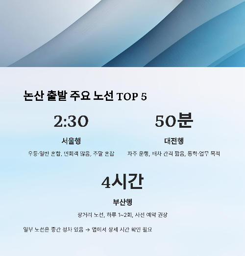 ✅ 3. 논산 출발 주요 노선 TOP 5