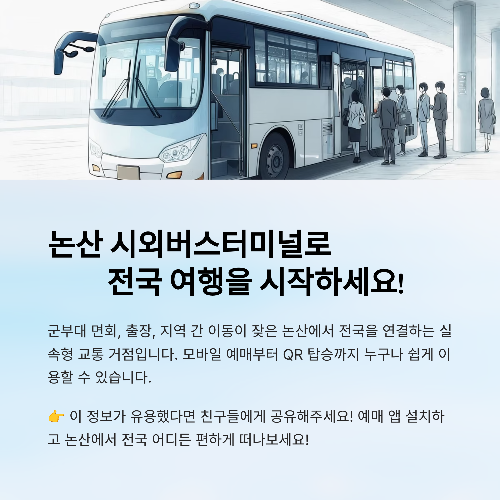 👇 예매 앱 설치하고, 논산에서 전국 어디든 편하게 떠나보세요!