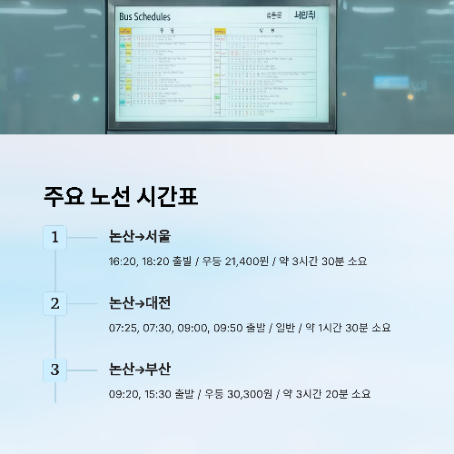 ✅ 4. 🚌 논산 시외 버스터미널 주요 노선 시간표