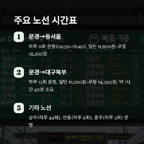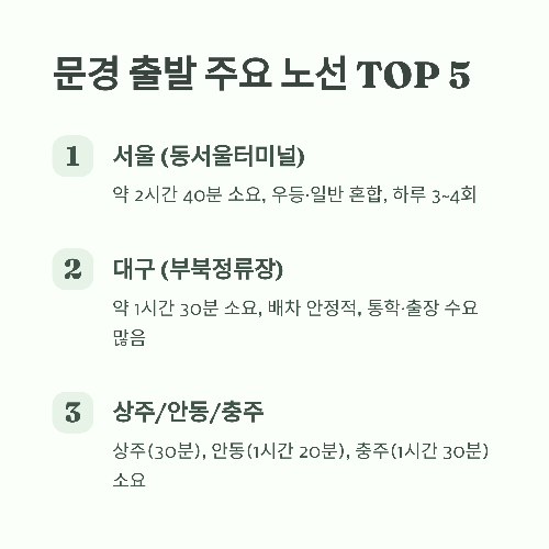 ✅ 3. 문경 출발 주요 노선 TOP 5