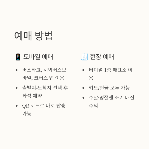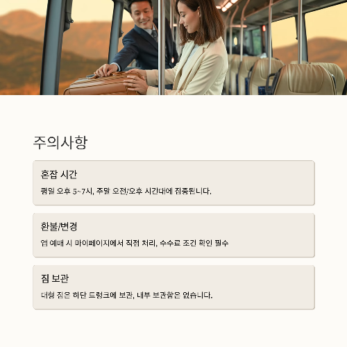 ✔ 주말·명절엔 인기 노선 조기 마감 주의