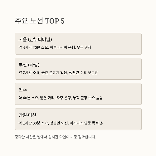 ✔ 진주, 창원 등 단거리 노선까지 모두 연결됩니다.