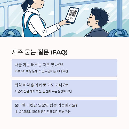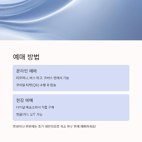 ✔ 온라인보다 30분 이내 출발 노선은 현장 예매가 더 빠를 수 있어요.