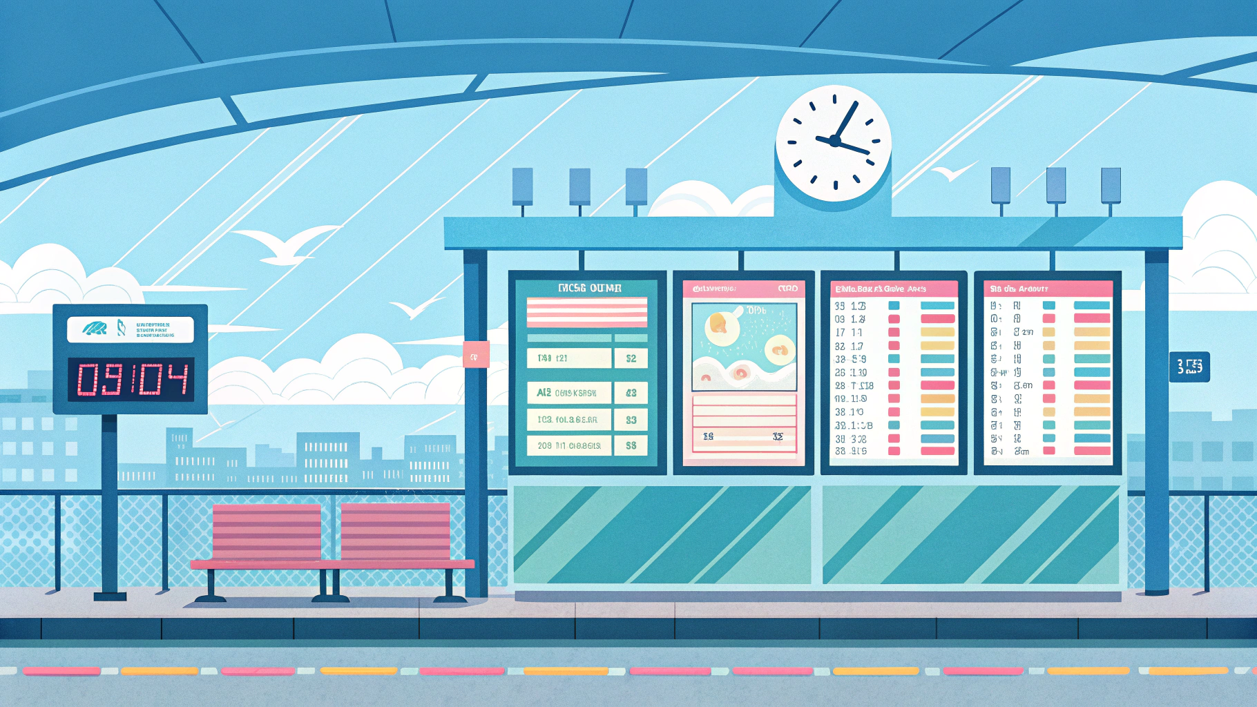 - 전광판에서 출발지와 시간 확인 가능