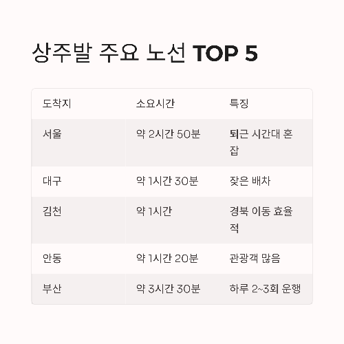 👇 지금 상주발 시외버스 노선과 예매법, 미리 확인해 보세요!