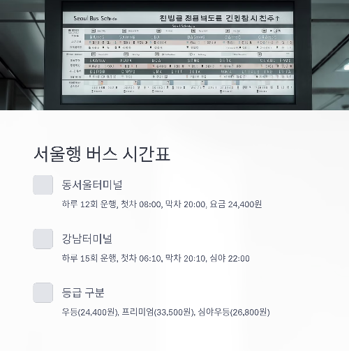 📌 예매 시 등급 확인 (우등버스는 탑승 쾌적함↑)