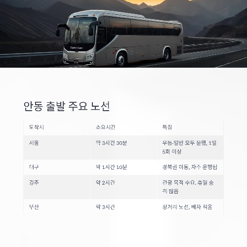 ✅ 3. 안동 출발 주요 노선 TOP 4