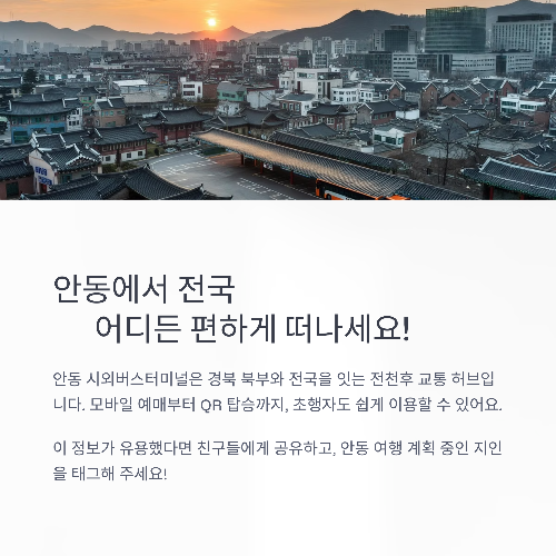 👇 지금 바로 예매 앱 설치하고, 안동에서 전국 어디든 편하게 떠나보세요!