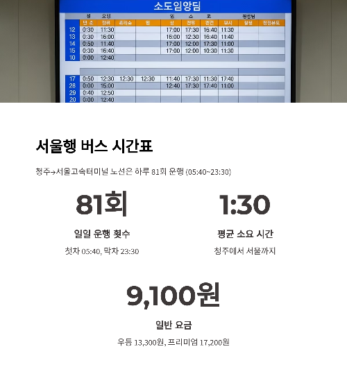 🚌 청주 → 서울고속터미널 (고속버스)