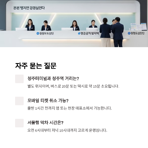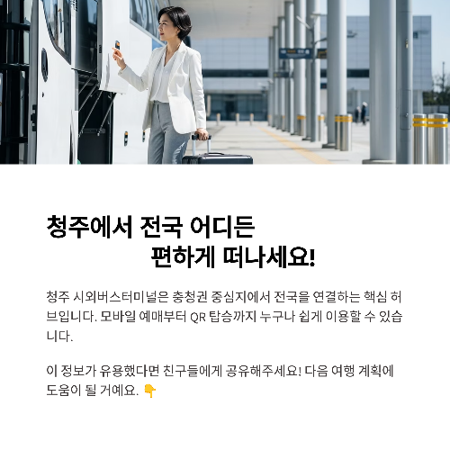 👇 지금 예매 앱 설치하고, 청주에서 전국 어디든 편하게 떠나보세요!