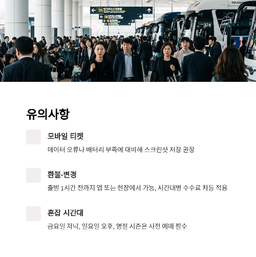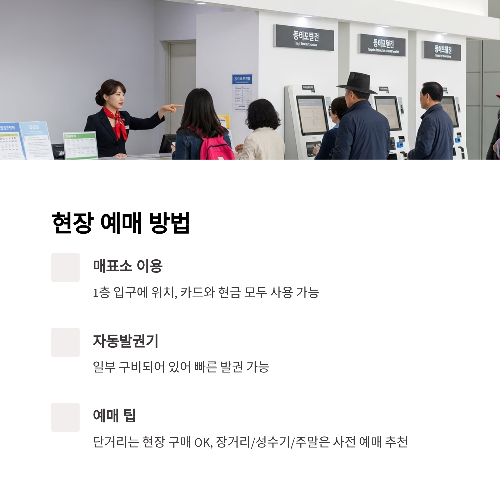✔ 장거리, 성수기, 주말은 사전 예매 추천