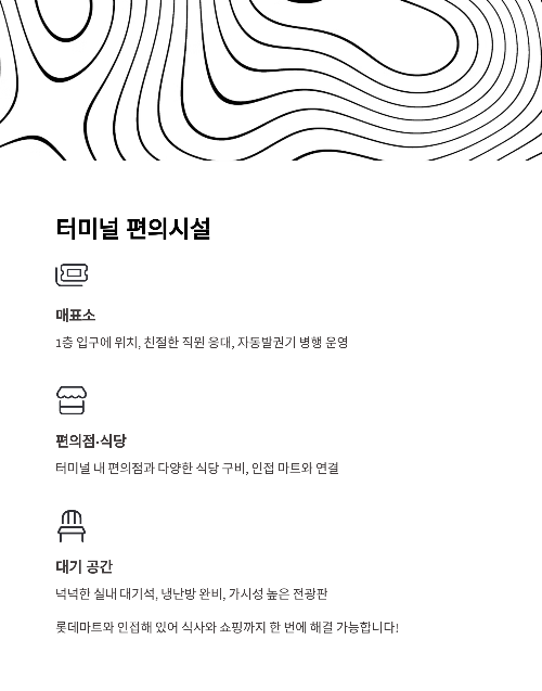 | 편의점 | 터미널 내 또는 인접 마트에 위치 / 간식, 생필품 구매 용이 |